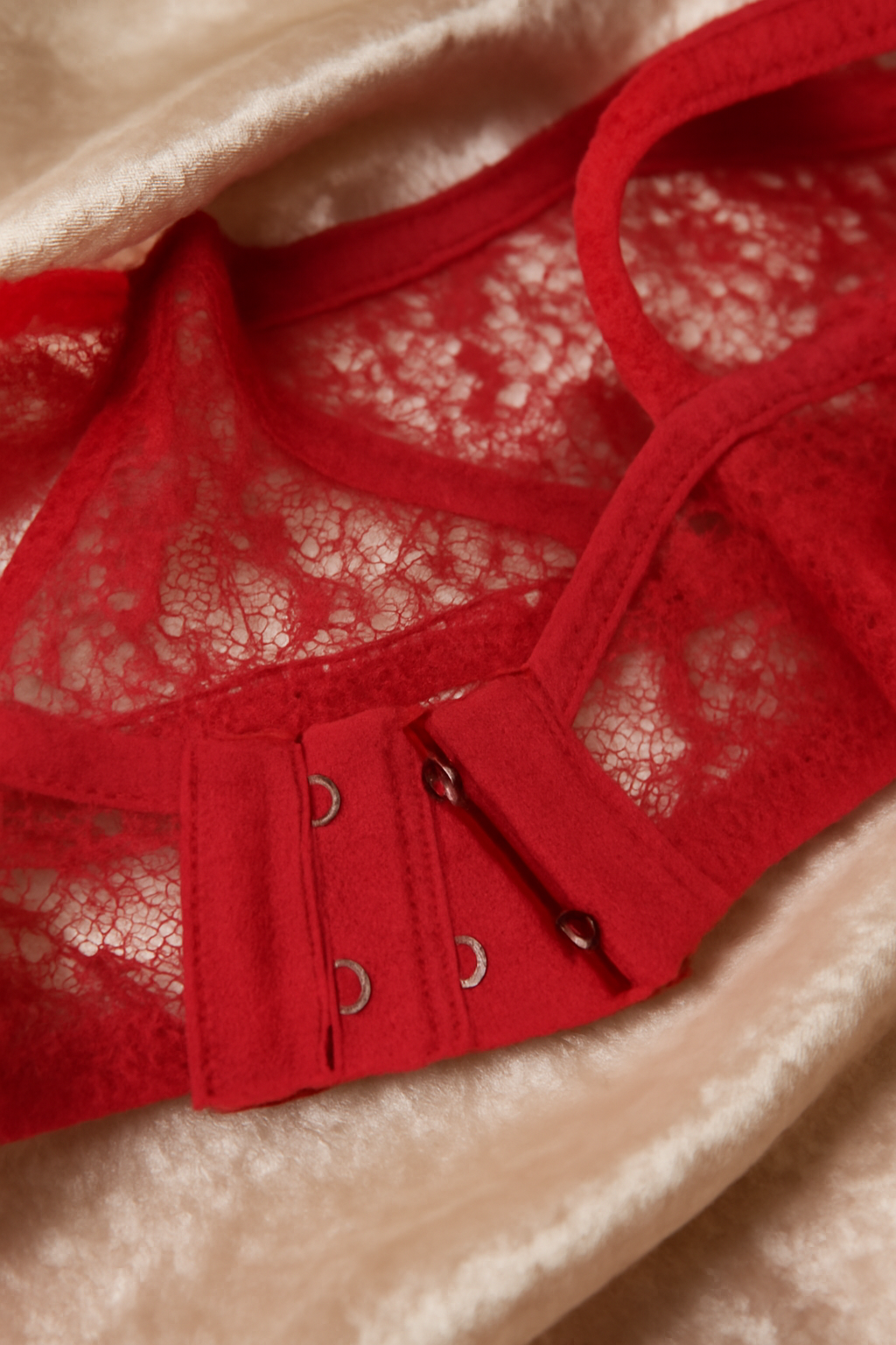 Turn heads with our Elegant Red Lace Bralette Bra, crafted from delicate sheer floral lace for a soft, breathable fit.