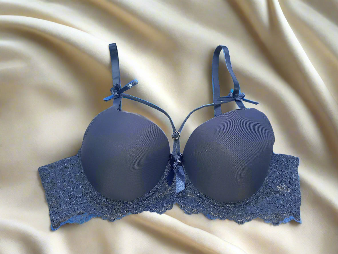 Step into everyday elegance with our Elegant Steel-Blue Padded Lace Bra, designed for women who want comfort without sacrificing style. Available in 32 - 40 sizes.