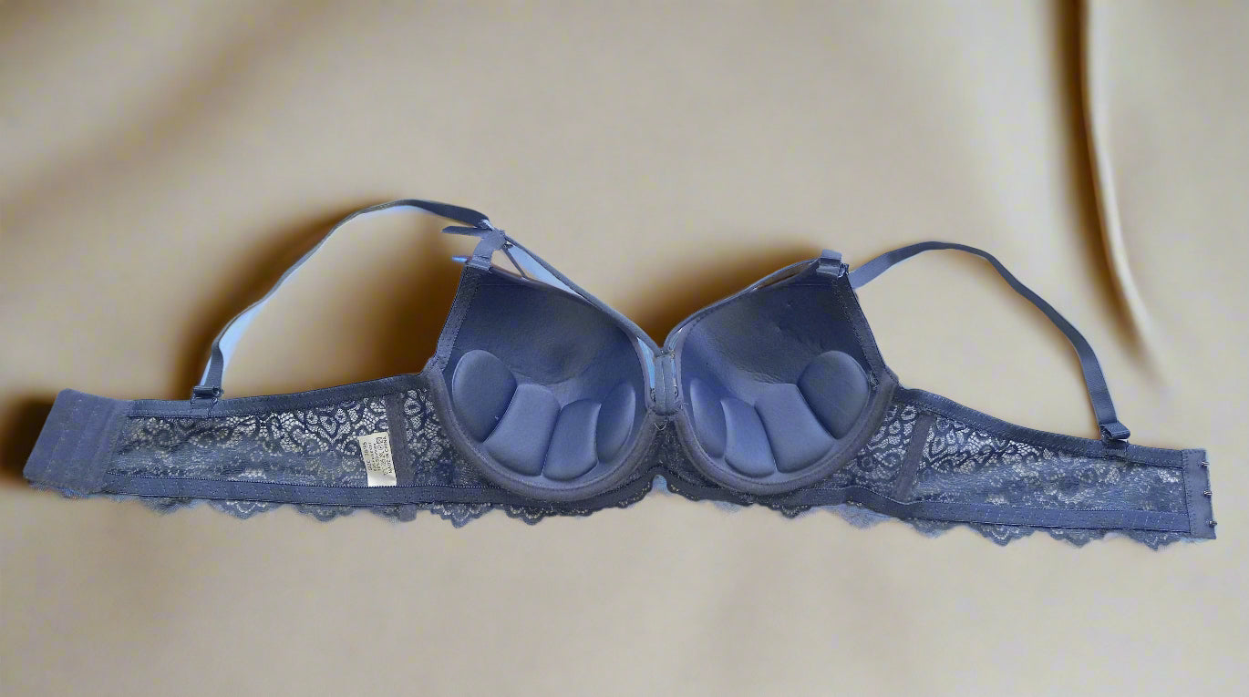 Elegant Steel-Blue Padded Lace Bra – Everyday Comfort, Luxe Look
